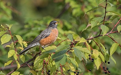 American Robin in a Chokecherry Tree