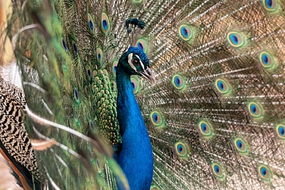 Peacock Close Up Tail Feathers Out