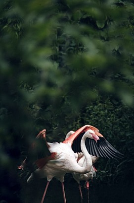 Flamingo spreading its wings