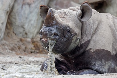 The black rhinoceros, black rhino or hook-lipped rhinoceros (Diceros bicornis)