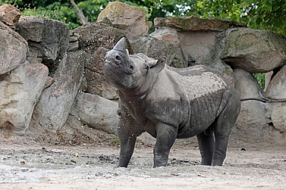 The black rhinoceros, black rhino or hook-lipped rhinoceros (Diceros bicornis)