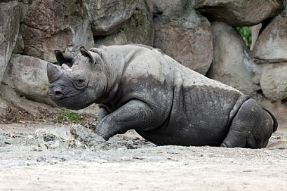 The black rhinoceros, black rhino or hook-lipped rhinoceros (Diceros bicornis)
