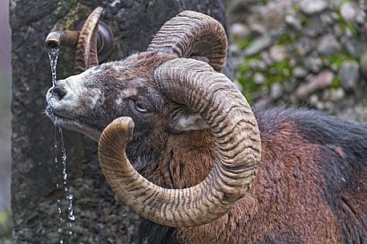 Moufflon drinking water at fountain