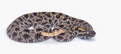 Dusky Pigmy or Pygmy Rattlesnake - Sisturus miliarius barbouri - full view of entire snake in great detail throughout. Isolated on white background