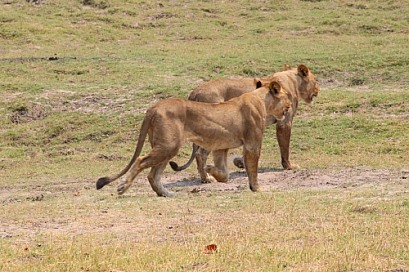 Young adult lions on the hunt