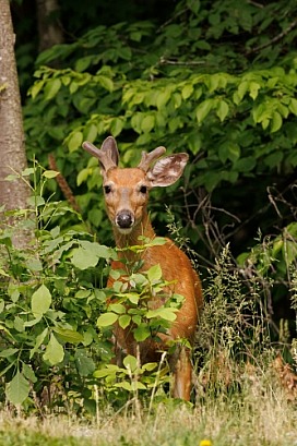 A young buck stops to look