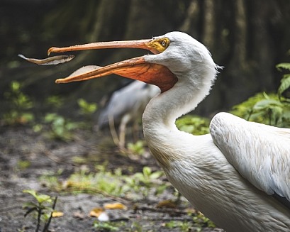 American White Pelican Eating