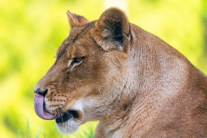 Lioness licking nose