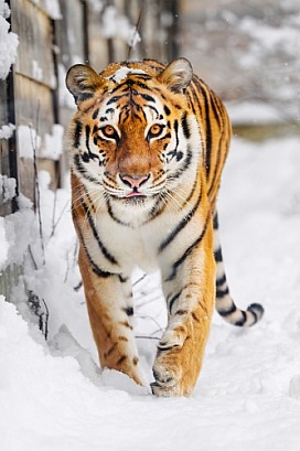 Tiger walking in snow