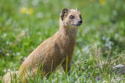 Yellow mongoose posing in the grass