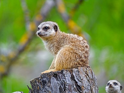 Meerkat sitting on log