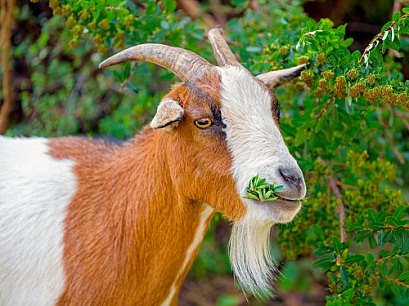 Goat eating leaves