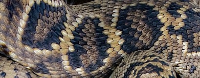 Eastern Diamondback rattlesnake - crotalus adamanteus - isolated on white background close up macro wallpaper of skin keeled or rough scales pattern and texture variable diamond shapes
