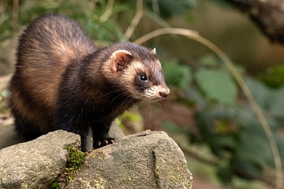European Polecat Close Up Looking Down Off Rocks