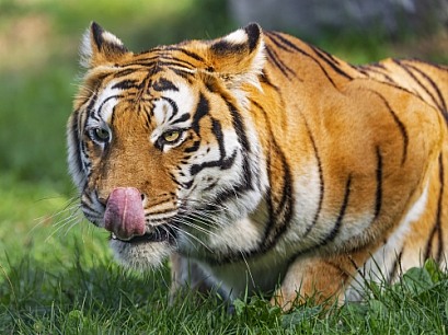 Tiger licking nose