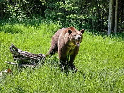 Grizzly bear in spring grass