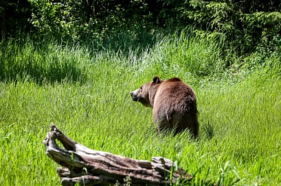 Grizzly bear in spring grass