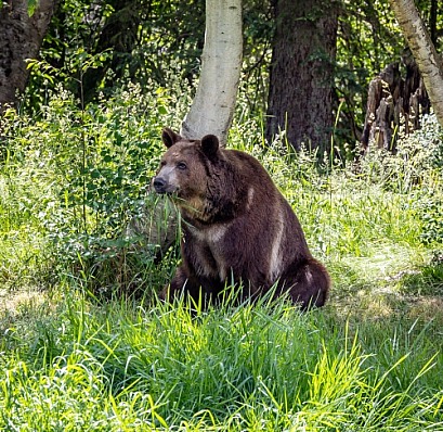 Grizzly bear in spring grass