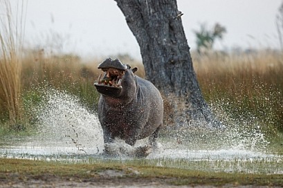 Aggressive hippo male fake attack