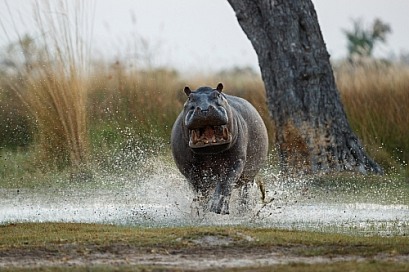 Aggressive hippo male fake attack