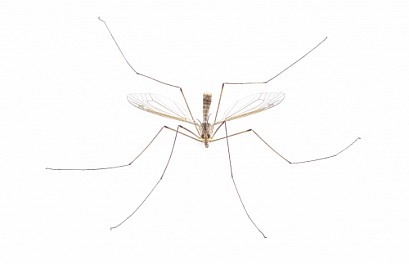 Cranefly species Tipula Sayi daddy longlegs in high definition with extreme focus and DOF depth of field isolated on white background. often mistaken as a larger mosquito. top front face view