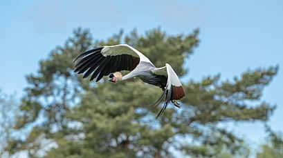 Flying crowned crane