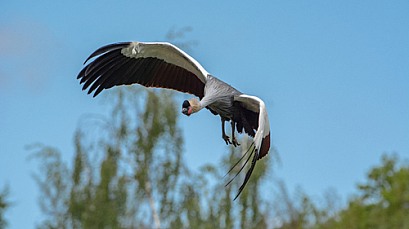 Flying crowned crane