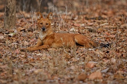 Indian wild dog pose in the nature habitat