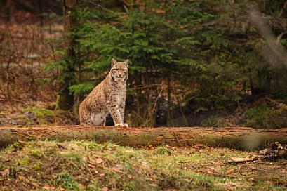 Eurasian lynx in the nature habitat. Beautiful and charismatic animal. Wild Europe. European wildlife. Animals in european forests. Lynx lynx.