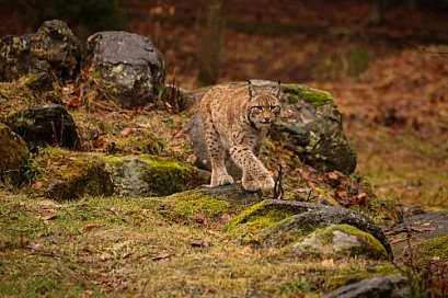 Eurasian lynx in the nature habitat. Beautiful and charismatic animal. Wild Europe. European wildlife. Animals in european forests. Lynx lynx.
