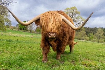 Scottish highland cow close up