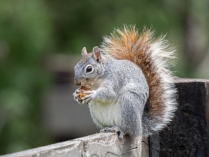 This Grey Squirrel looked to cute munching on his prize on a fence in Patagonia Arizona