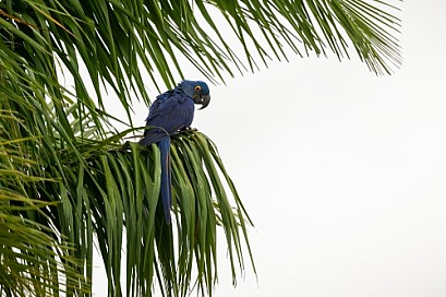 hyacinth macaw close up on a palm tree in the nature habitat