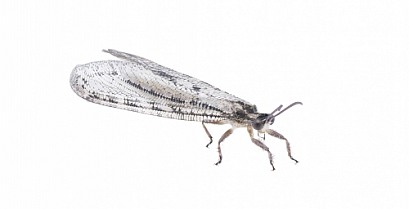 Large adult giant ant lion - Vella Americana. Lace like pattern on wings in great detail. isolated on white background side top view