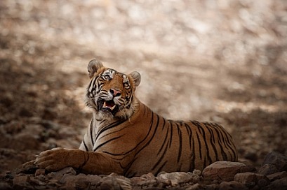 Beautiful tiger in the nature habitat. Tiger pose in amazing light. Wildlife scene with wild animal. Indian wildlife. Indian tiger. Panthera tigris tigris.