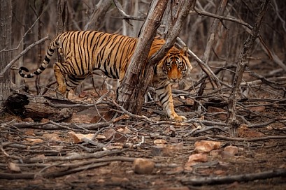 Beautiful tiger in the nature habitat. Tiger pose in amazing light. Wildlife scene with wild animal. Indian wildlife. Indian tiger. Panthera tigris tigris.