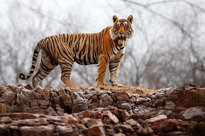Beautiful tiger in the nature habitat. Tiger pose in amazing light. Wildlife scene with wild animal. Indian wildlife. Indian tiger. Panthera tigris tigris.