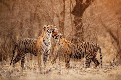 Beautiful tiger in the nature habitat. Tiger pose in amazing light. Wildlife scene with wild animal. Indian wildlife. Indian tiger. Panthera tigris tigris.