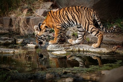 Beautiful tiger in the nature habitat. Tiger pose in amazing light. Wildlife scene with wild animal. Indian wildlife. Indian tiger. Panthera tigris tigris.