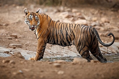 Beautiful tiger in the nature habitat. Tiger pose in amazing light. Wildlife scene with wild animal. Indian wildlife. Indian tiger. Panthera tigris tigris.