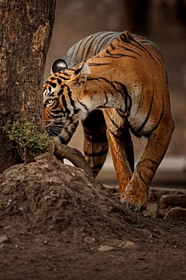 Beautiful tiger in the nature habitat. Tiger pose in amazing light. Wildlife scene with wild animal. Indian wildlife. Indian tiger. Panthera tigris tigris.