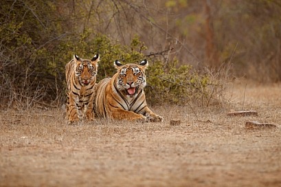 Beautiful tiger in the nature habitat. Tiger pose in amazing light. Wildlife scene with wild animal. Indian wildlife. Indian tiger. Panthera tigris tigris.