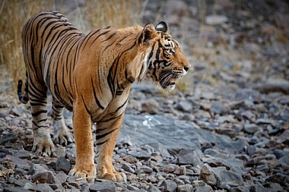 Beautiful tiger in the nature habitat. Tiger pose in amazing light. Wildlife scene with wild animal. Indian wildlife. Indian tiger. Panthera tigris tigris.