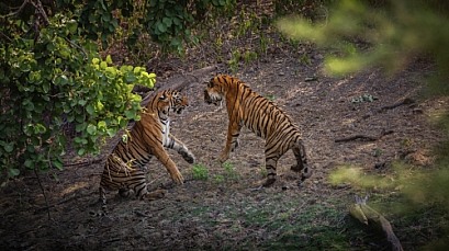Beautiful tiger in the nature habitat. Tiger pose in amazing light. Wildlife scene with wild animal. Indian wildlife. Indian tiger. Panthera tigris tigris.