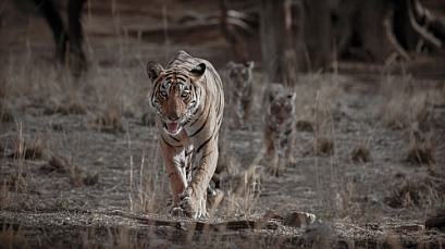 Beautiful tiger in the nature habitat. Tiger pose in amazing light. Wildlife scene with wild animal. Indian wildlife. Indian tiger. Panthera tigris tigris.