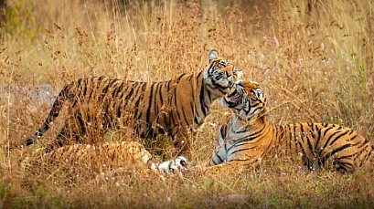 Beautiful tiger in the nature habitat. Tiger pose in amazing light. Wildlife scene with wild animal. Indian wildlife. Indian tiger. Panthera tigris tigris.