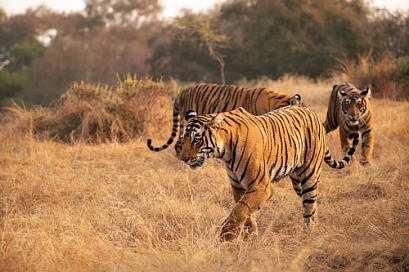 Beautiful tiger in the nature habitat. Tiger pose in amazing light. Wildlife scene with wild animal. Indian wildlife. Indian tiger. Panthera tigris tigris.