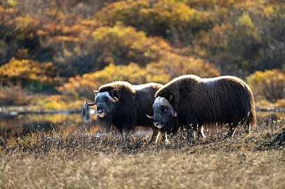 Two musk ox in the Fall in Alaska