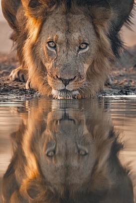 African Lion drinking