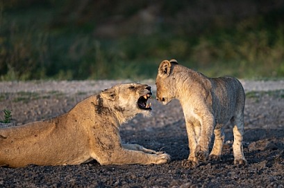 Lioness scolding a cubb